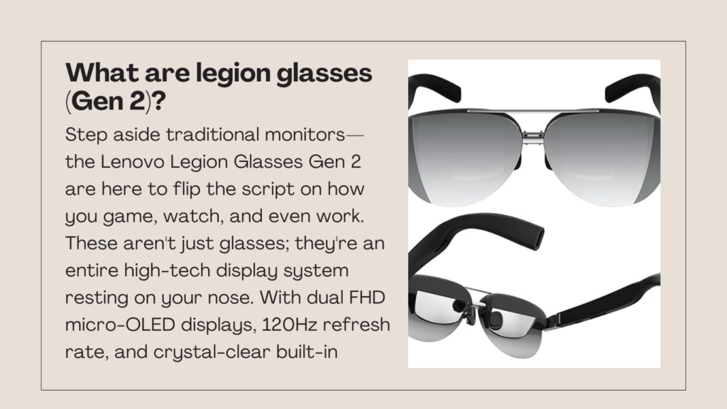 Step aside traditional monitors—the Lenovo Legion Glasses Gen 2 are here to flip the script on how you game, watch, and even work. These aren’t just glasses; they’re an entire high-tech display system resting on your nose.